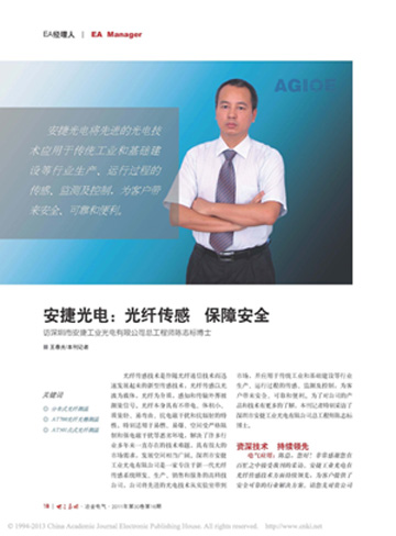 2011年6月《電氣應用》雜志第30卷第16期以《安捷光電:光纖傳感 保障安全》為題的文章對蘇州光格設備有限公司陳志標博士進(jìn)行了專(zhuān)題報道,下圖為具體報道內容。