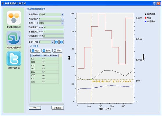 3. 動(dòng)態(tài)載流量評估:預測在未來(lái)一段時(shí)間內,加載任意變化負荷電流時(shí)芯線(xiàn)溫度的變化情況,為電纜動(dòng)態(tài)增容提供依據。